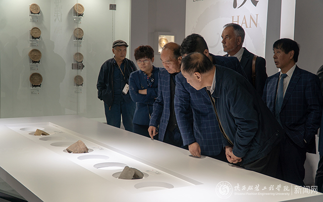 徐彬首先介绍了校史馆和数字艺术馆。校史馆展示了陕西服装工程学院二十五年的历史。数字艺术馆分设“中国纺织服装70周年”、“历届学生优秀设计作品”、“周秦汉唐历史文化精粹”、“丝绸之路艺术特展”、“苗绣特展”、“国际拼布艺术特展”等展馆。数字艺术馆内设沉浸影院。