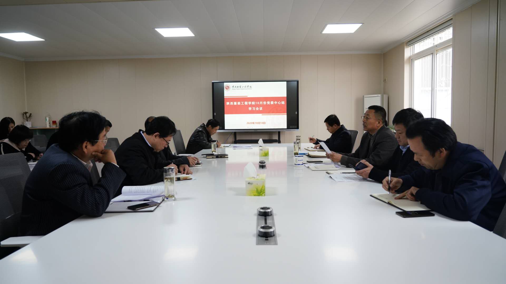 陕服新闻网讯(记者李文斌)10月14日下午,我校党委中心学习组在行政楼102会议室召开10月份学习扩大会议,也是本学年第6次中心组学习。全体校级领导、各党委委员、党委部门负责人、机关、基层党总支和直属党支部书记参加学习。校党委书记温锋主持会议,校党委副书记、校长张义明作会议总结。