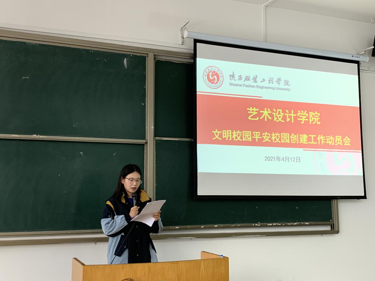 陕服新闻网讯(闫江婷)根据学校创建文明校园和平安校园工作统一部署,艺术设计学院于4月13日16:00,在F316教室召开文明校园平安校园创建工作动员会议,全体教师和学生代表参加了动员会。我院党总支书记、副院长时晓楠,副院长任晓丽出席了会议。办公室主任野苏民主持会议。