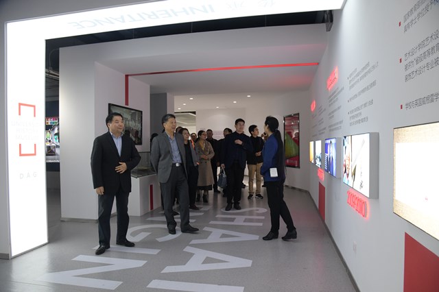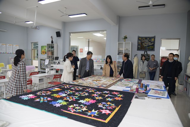 交流座谈会后,吴俊林、罗文谦陪同赵金安一行参观了我校行政中心、季羡林国学院、数字艺术馆、现代服装产业学院、体育馆,考察了图书馆、服装学院、艺术设计学院、信息工程学院和学生餐厅。