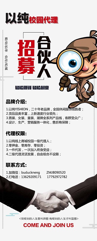 为深化校企合作,推进产教融合,积极开拓服饰新零售渠道发展,打造大学生全面服装营销能力,西北以纯集团现面向高校招募线上商城校园合伙人,企业提供全方位平台、产品、培训、售后服务,合伙人零成本创业,一次加入终身收益,我们期待你的加入!