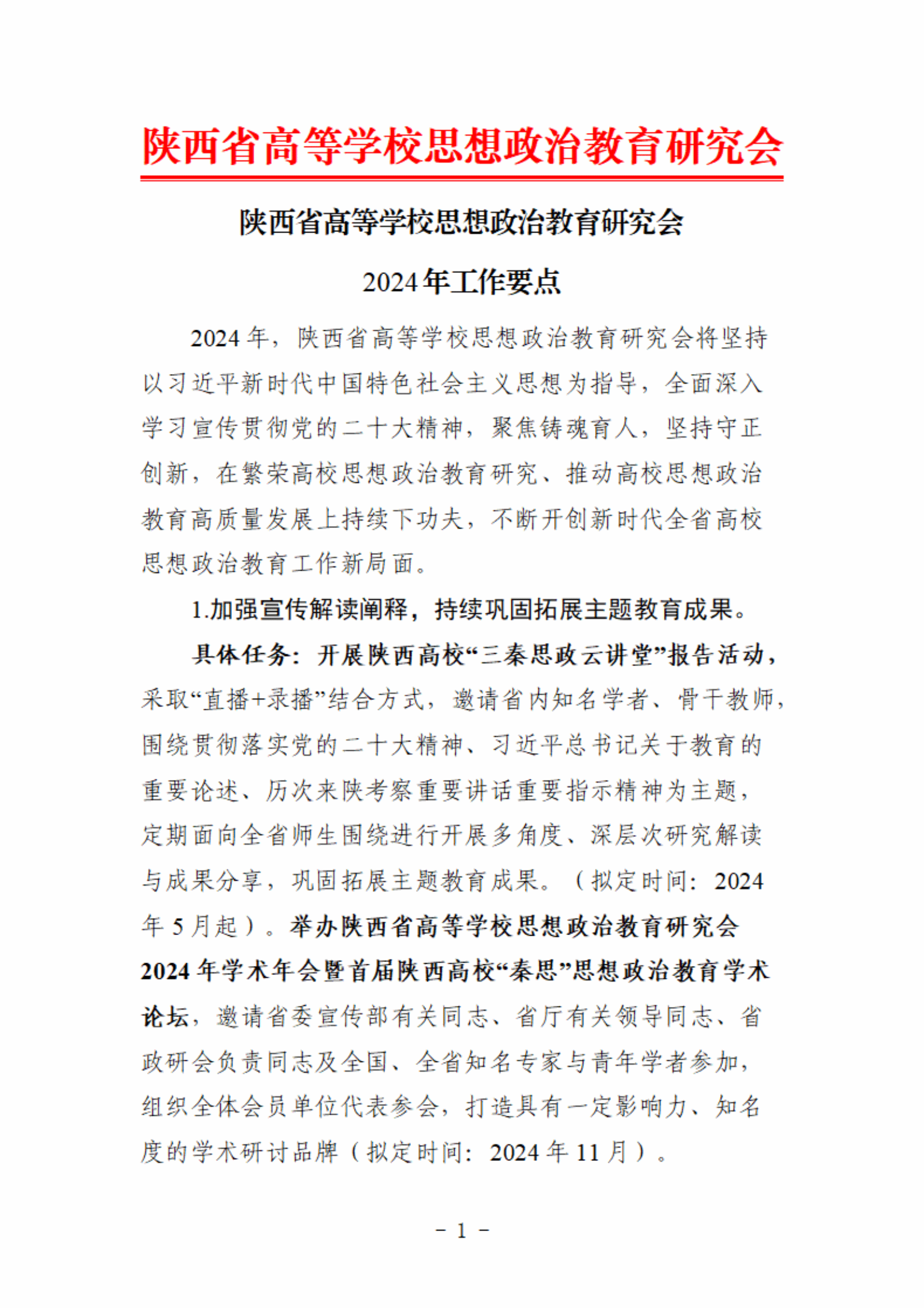陕西省高等学校思想政治教育研究会2024年工作要点
