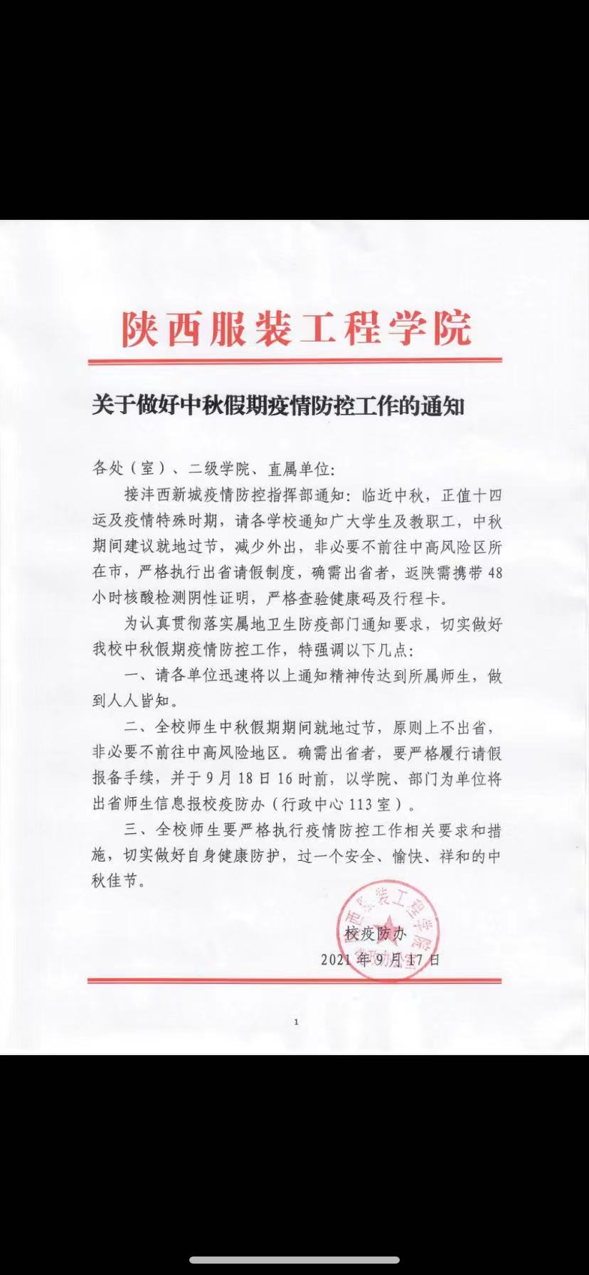 关于做好中秋假期疫情防控工作的通知