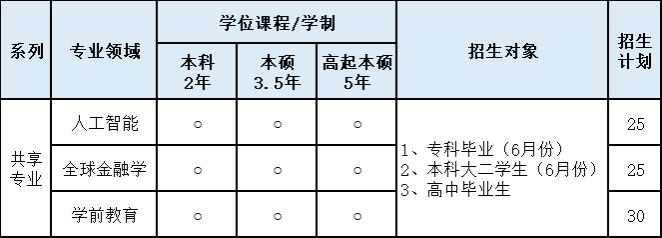 本科推荐专业:人工智能及软件,全球商务/物流,贸易,幼儿及家庭教育