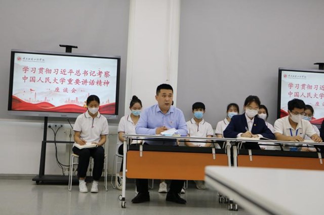 座谈会上,围绕学习习近平总书记考察中国人民大学时的重要讲话精神,结合自身学习工作体会,辅导员代表和青年学生代表进行了交流发言。