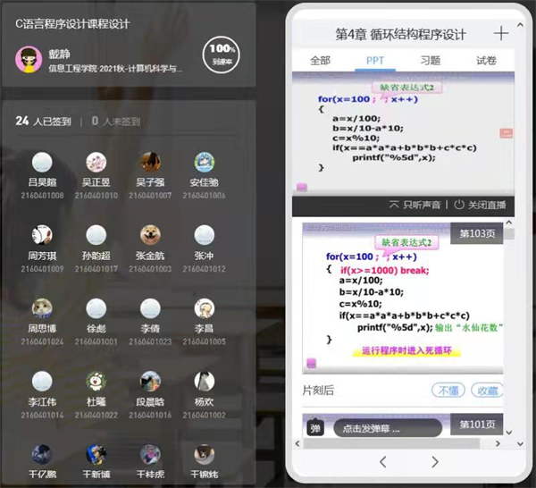 潘虹老师正在上《C语言程序设计课程设计》课