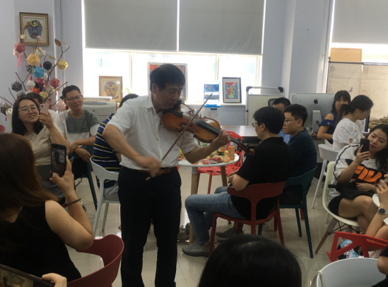 其次,唐校长进行了小提琴演奏,各位老师尽显才艺展示,通过相声、歌声等节目表达了对学校的感激之情!