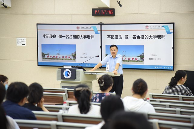 下午,陕西服装工程学院校长姜寿山教授围绕《牢记使命—做一名合格的大学老师》主题与新教师们进行交流分享。在会上,姜校长对新入职教师进行提问:“在上学期间,对哪位老师印象最深,原因是什么?”,同学们踊跃回答,现场氛围轻松活跃。姜校长通过提问导入主题,启发新教师意识到一名老师可以影响孩子一生,思考自己应该如何做好一名教师,做好学生的领路人;热爱关心学生,打造良好的师生关系;注重教学方法,营造良好的学习氛围,使学生热爱学习,学会学习,真正受益;教师要不断完善自己,做到有教无类,做真正的“大先生”,做受学生尊敬的知识分子。
