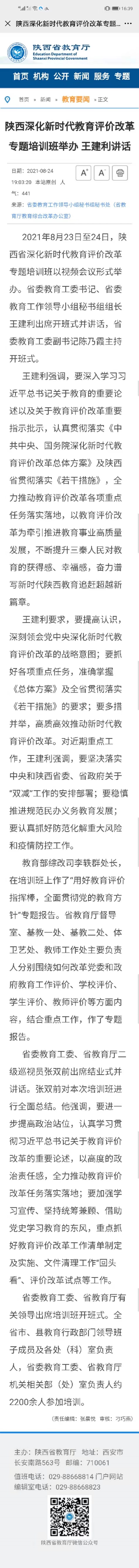 陕西深化新时代教育评价改革专题培训班举办 王建利讲话