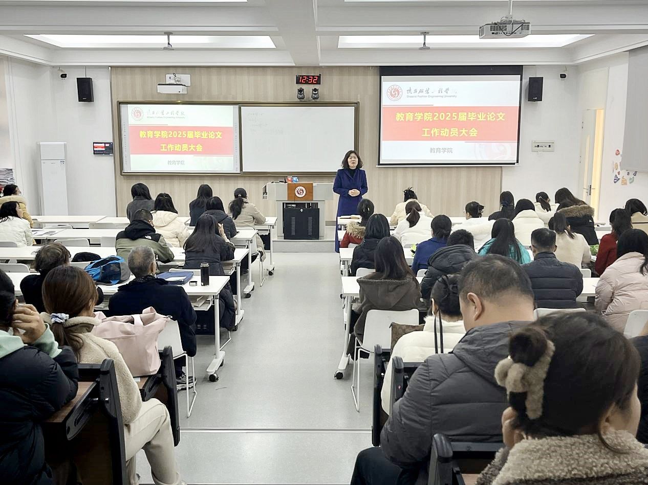 陕服新闻网讯(教育学院)为了深入规范毕业论文的过程管理,不断提高毕业论文的质量标准,确保2025届毕业生的论文工作能够高效、有序地进行,教育学院11月28日在B208会议室召开2025届毕业论文工作动员大会。参与2025届毕业论文指导工作的103位教师参加会议。教育学院执行院长拓梅梅主持会议。