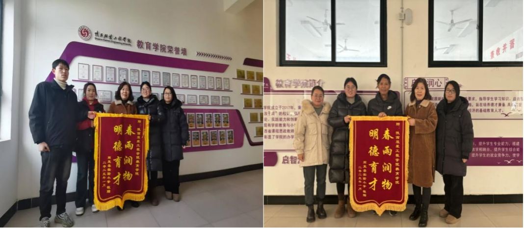 在教育学院荣誉墙前,师生们共同见证了这一荣耀时刻。锦旗上“春雨润物,明德育才”的金色大字熠熠生辉。教育学院表示,这面锦旗意义重大,是荣誉更是激励。教育学院会秉持“启智润心、知行合一”的办学理念,持续提升教学质量,为社会培育更多优秀教育人才。