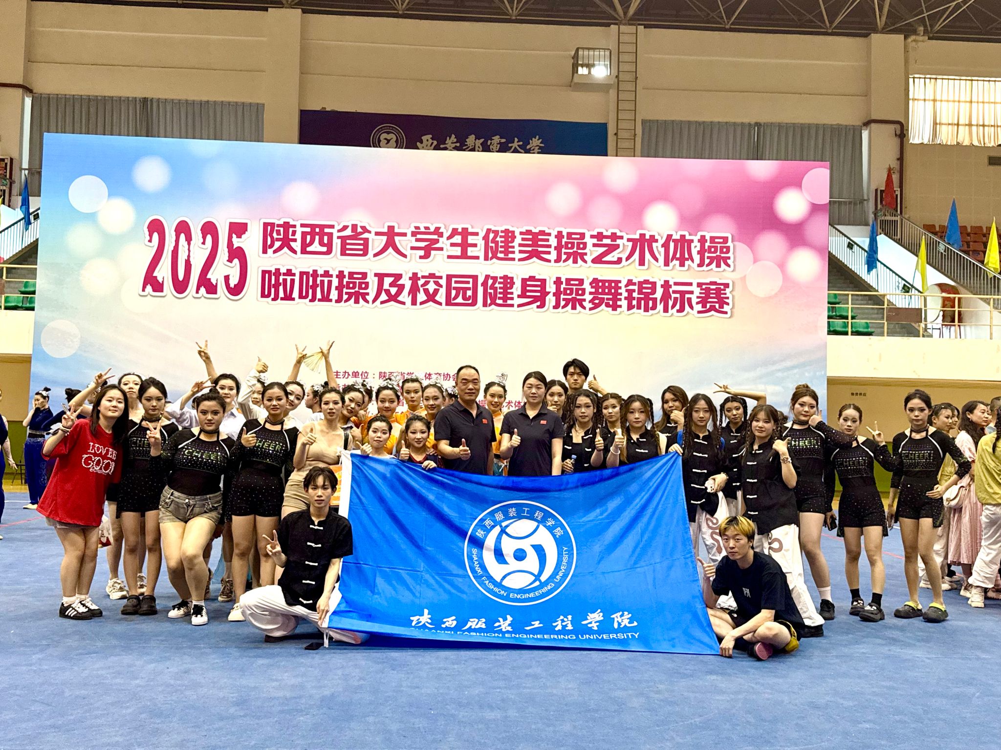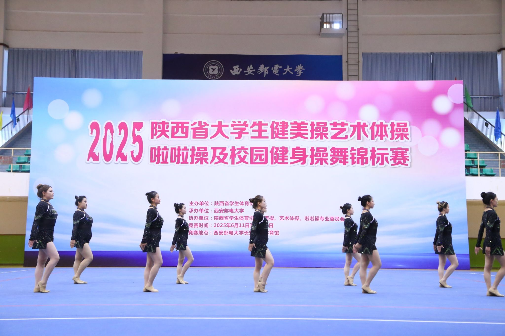 陕服新闻网讯(赵倩)6月12日下午,2025年陕西省大学生健美操、艺术体操、啦啦操及校园健身操舞锦标赛在西安邮电大学(长安校区)体育馆圆满落幕。本次比赛由陕西省学生体育协会主办,西安邮电大学承办,陕西省学生体育协会健美操、艺术体操、啦啦操专业委员会协办。来自全省40所高校900余人参加了比赛。比赛分为健美操、艺术体操、啦啦操和校园健身操舞四个大项和若干小项,并按资格分为甲、乙、丙三组。