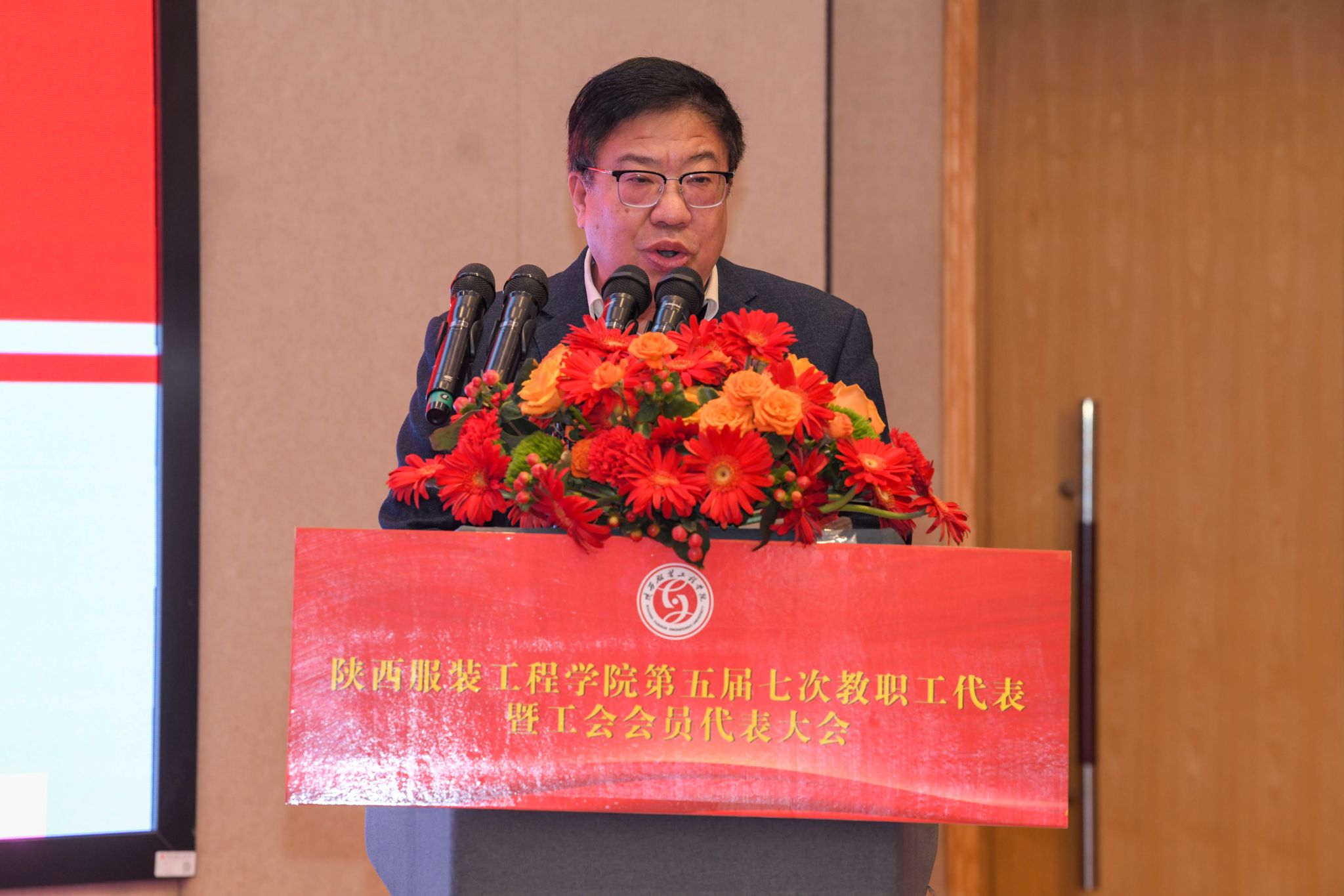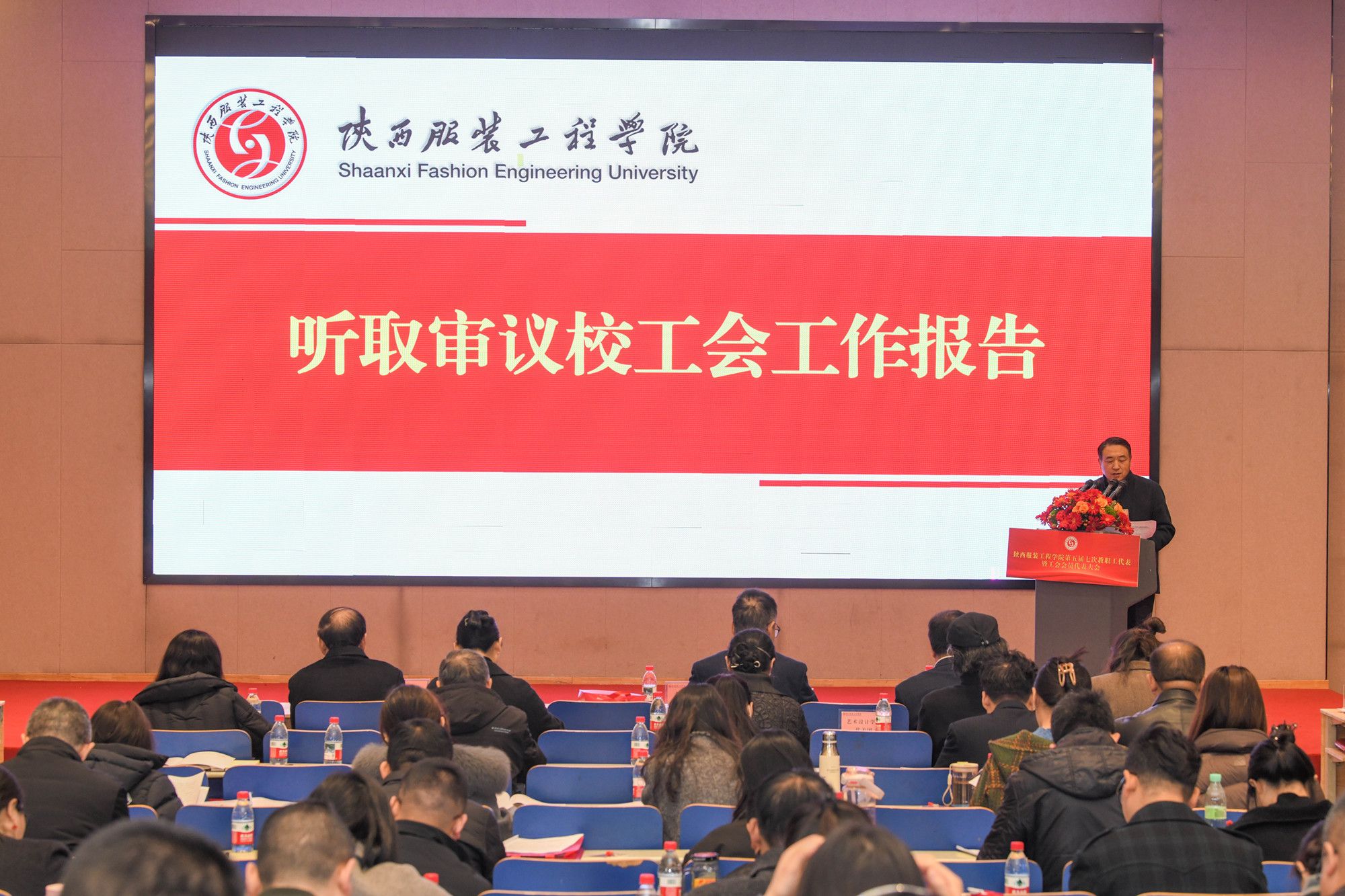 陕服新闻网讯(李文斌)3月10日,我校第五届第七次教职工代表大会暨工会会员代表大会(以下简称“双代会”)在E1-4报告厅召开。大会以“改革攻坚提质效,内涵发展谱新篇,为建设特色鲜明的一流应用型大学而努力奋斗”为主题,审议通过了校长工作报告、工会工作报告及提案征集处理情况报告,并原则通过了《陕西服装工程学院“十五五”发展规划(草案)》及《陕西服装工程学院自有专任教师第一轮聘期考核和第二轮岗位聘任实施办法》。大会127名正式代表、26名特邀代表齐聚一堂,共商学校发展大计。代表们围绕学校改革发展积极建言献策,提出了诸多富有建设性的意见建议,充分彰显了民主团结、求真务实的大会精神。
